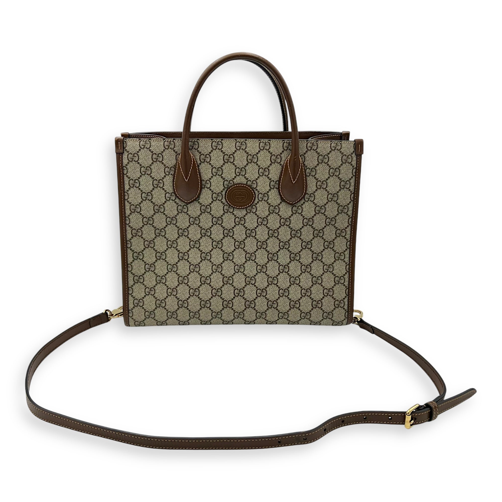Be the first to review “GG Supreme Brown Tote Bag in Interlocking GG Supreme, Gold hardware”