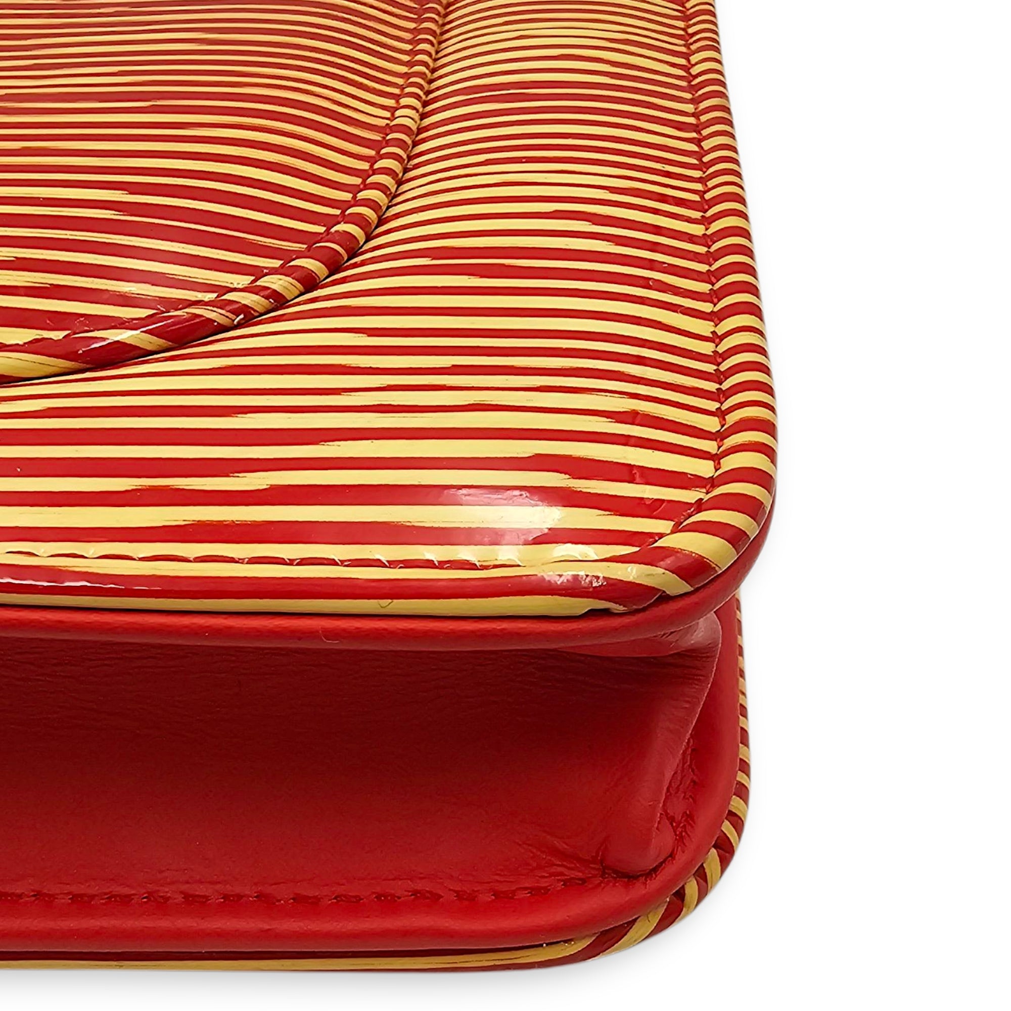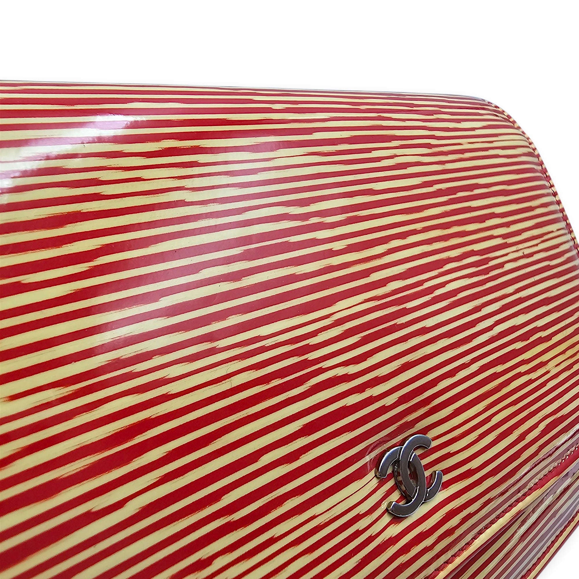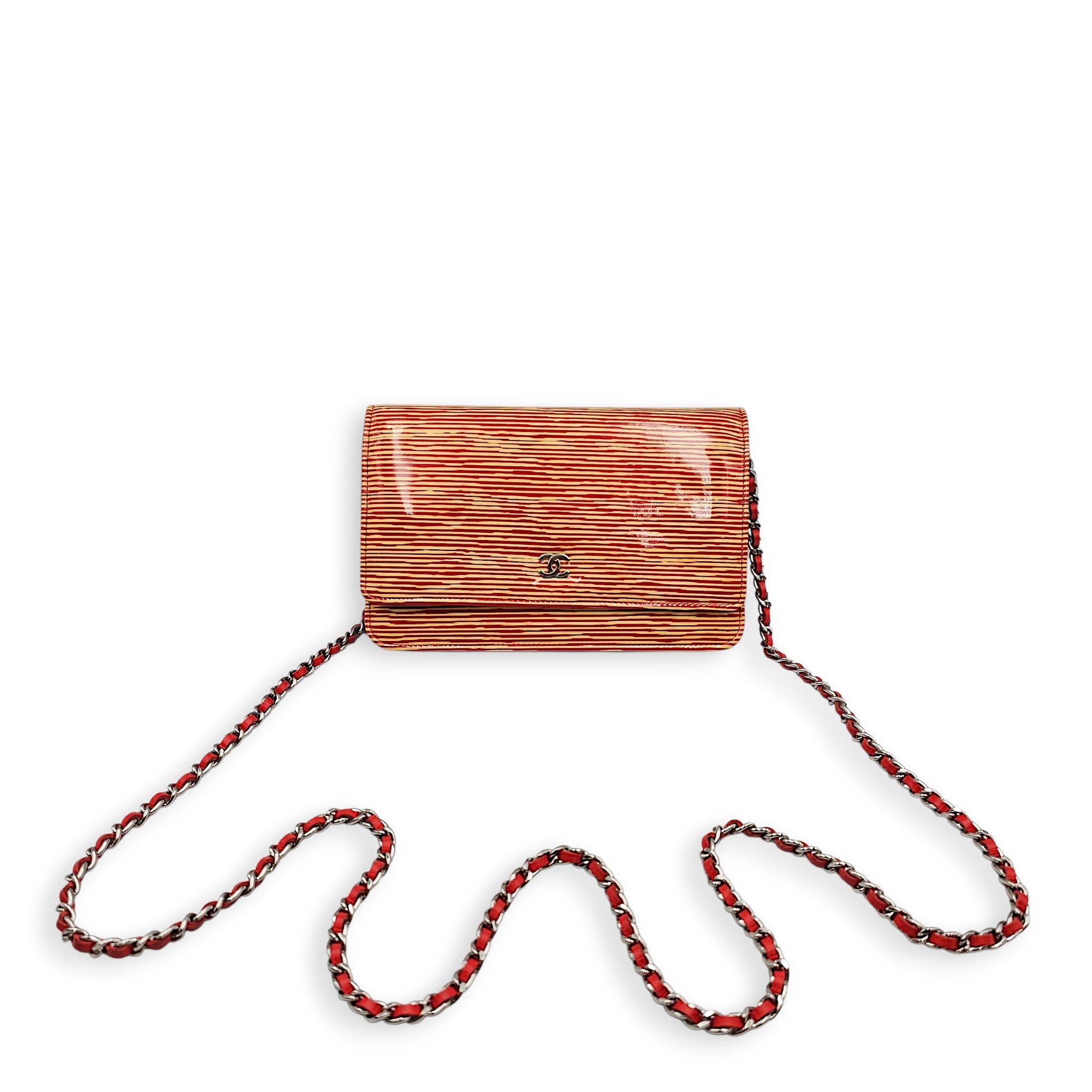 Limited Edition CC Orange Wallet on Chain in Patent Leather, Silver hardware