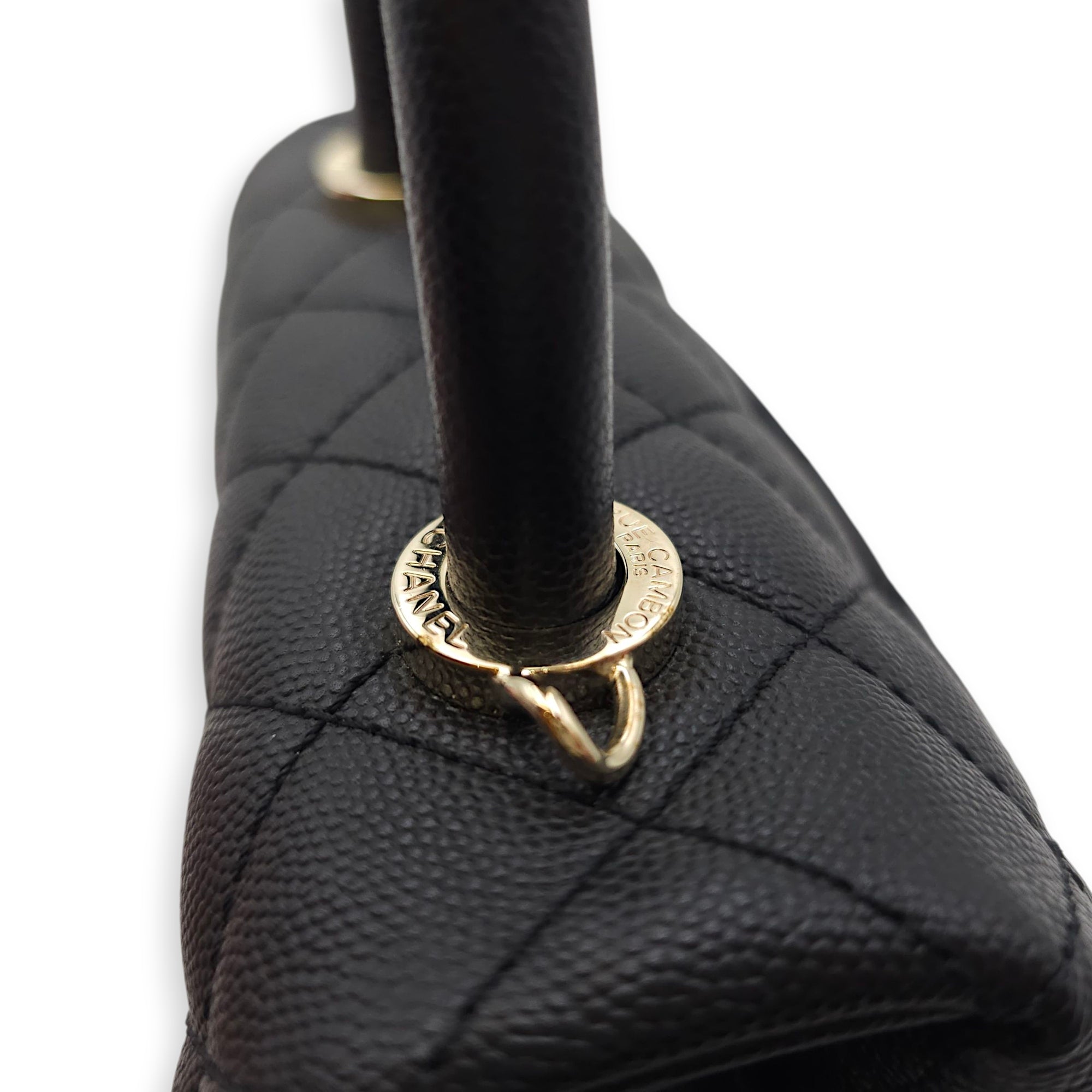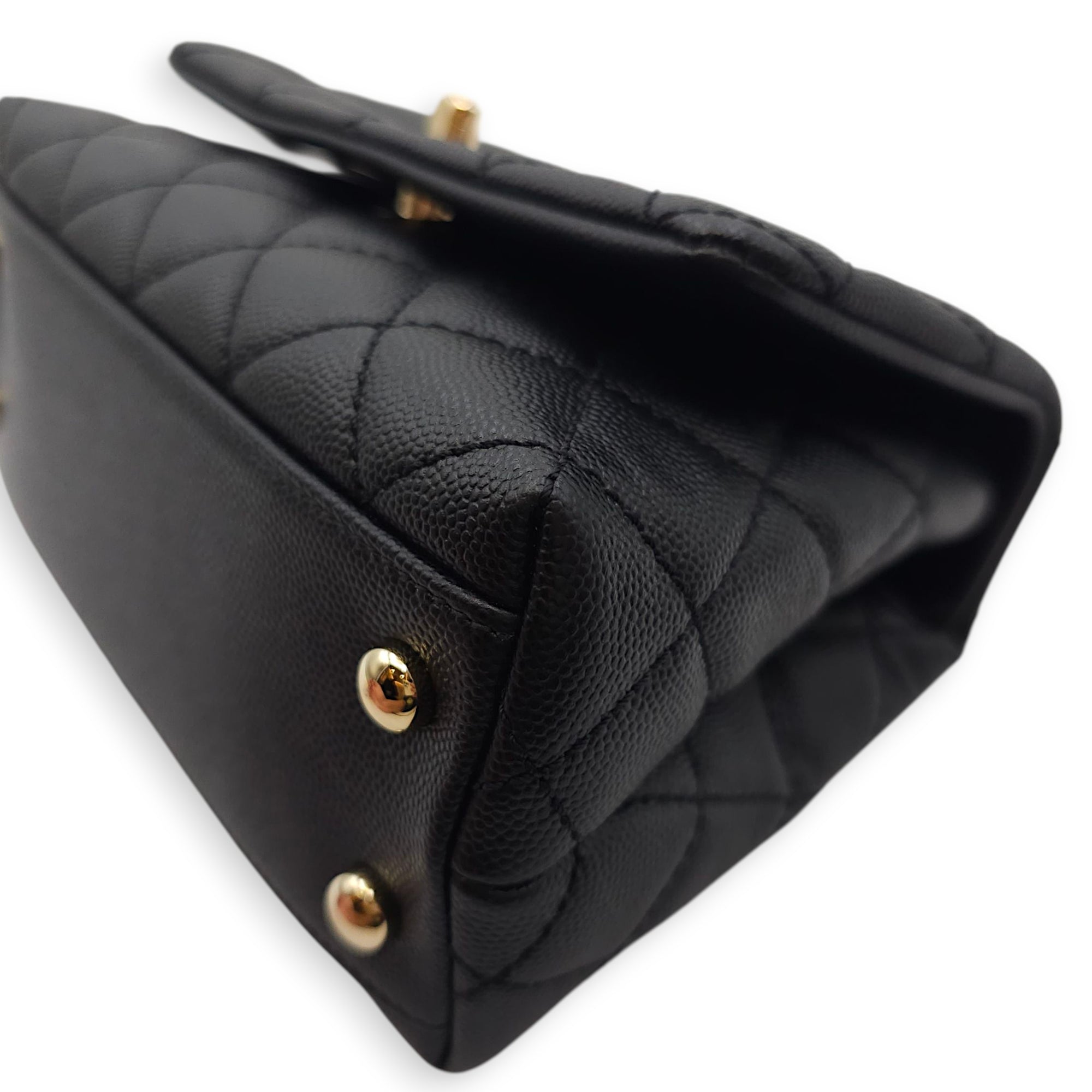 Be the first to review “Quilted Coco Handle Mini Black Shoulder Bag in Caviar Leather, Gold hardware”