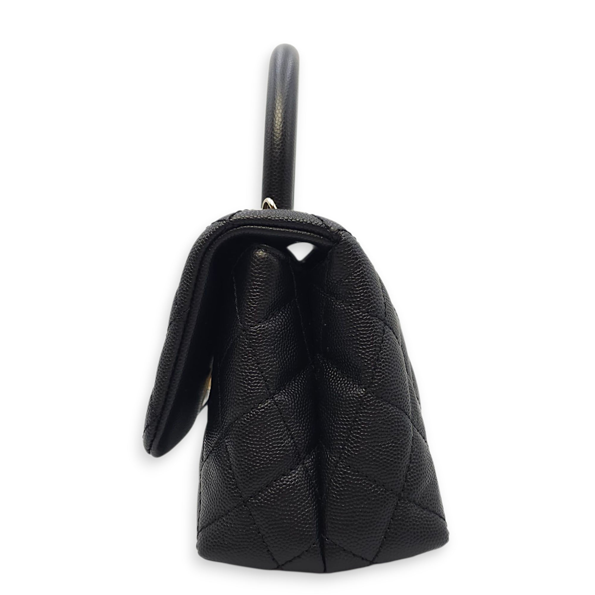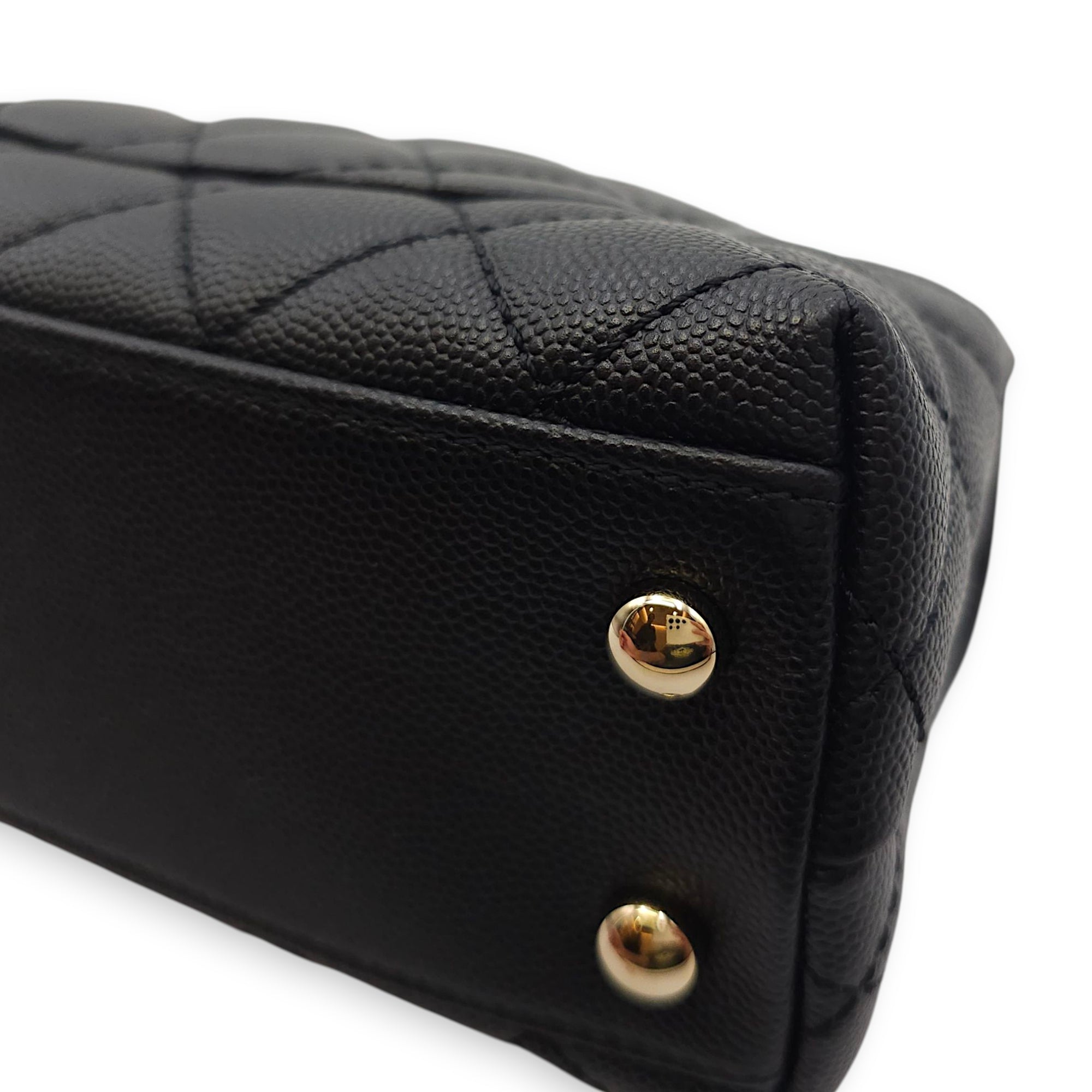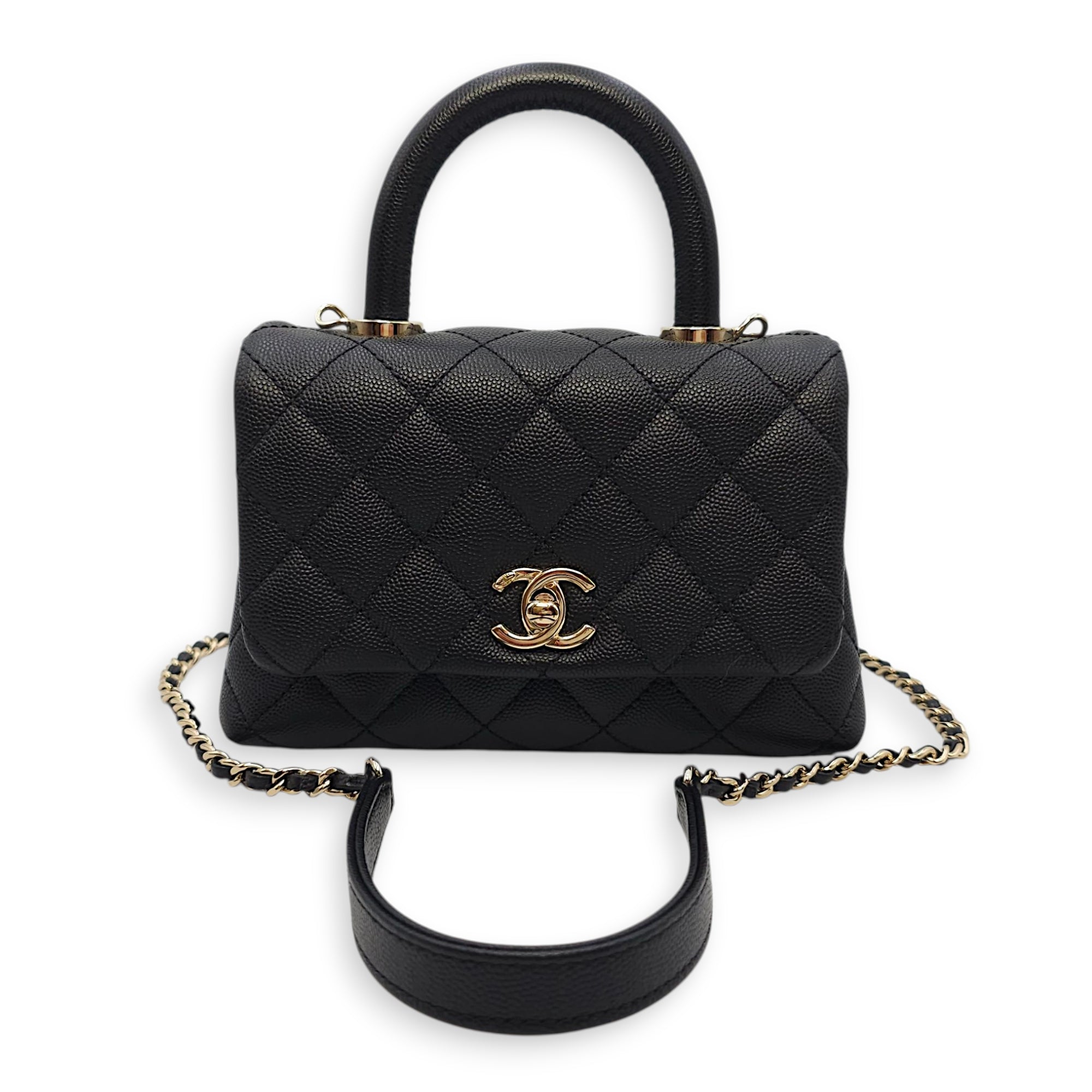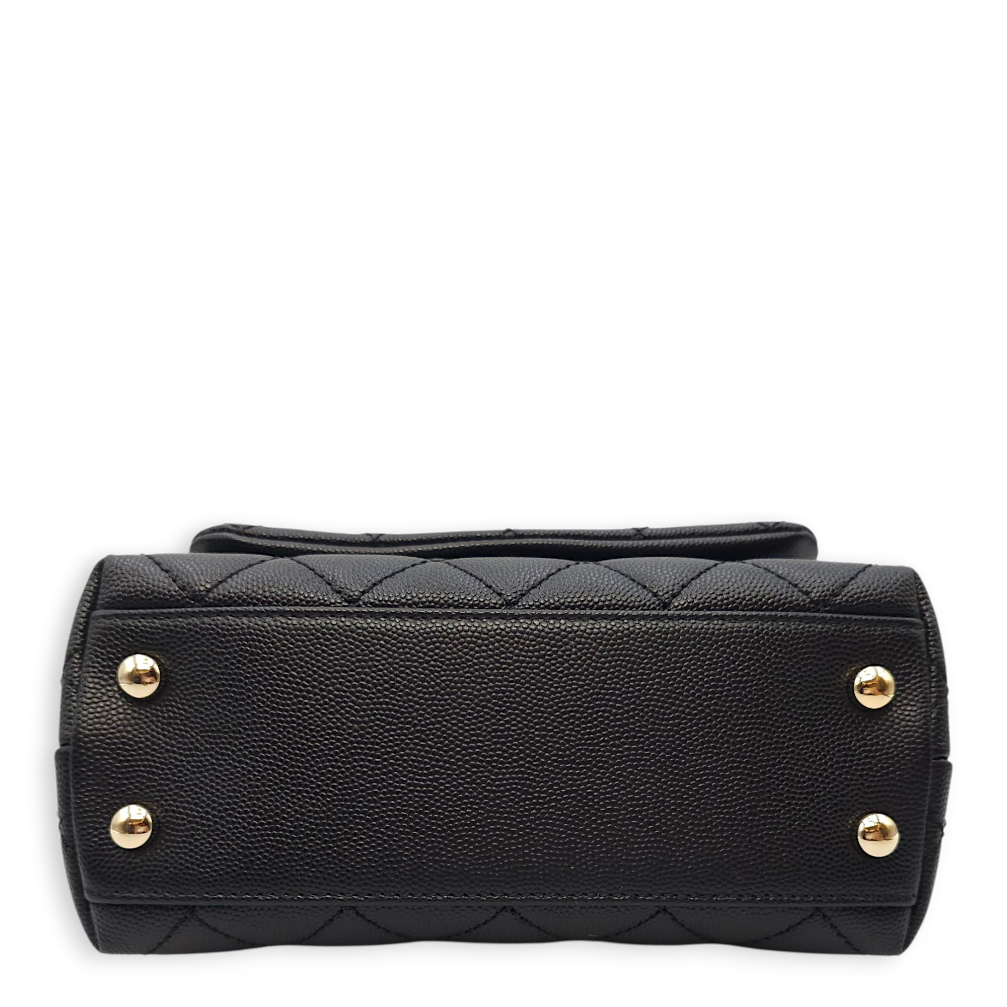 Quilted Coco Handle Mini Black Shoulder Bag in Caviar Leather, Gold hardware