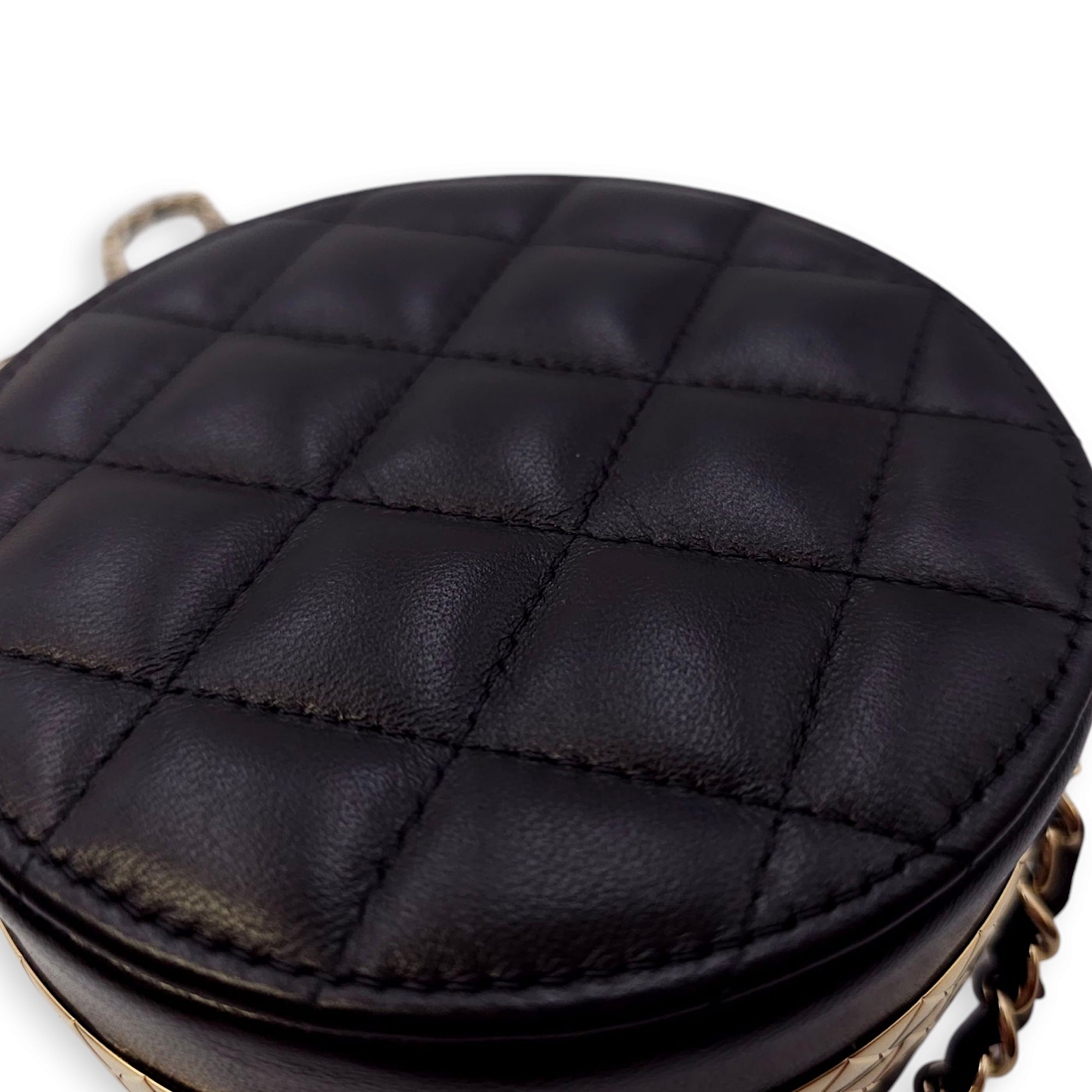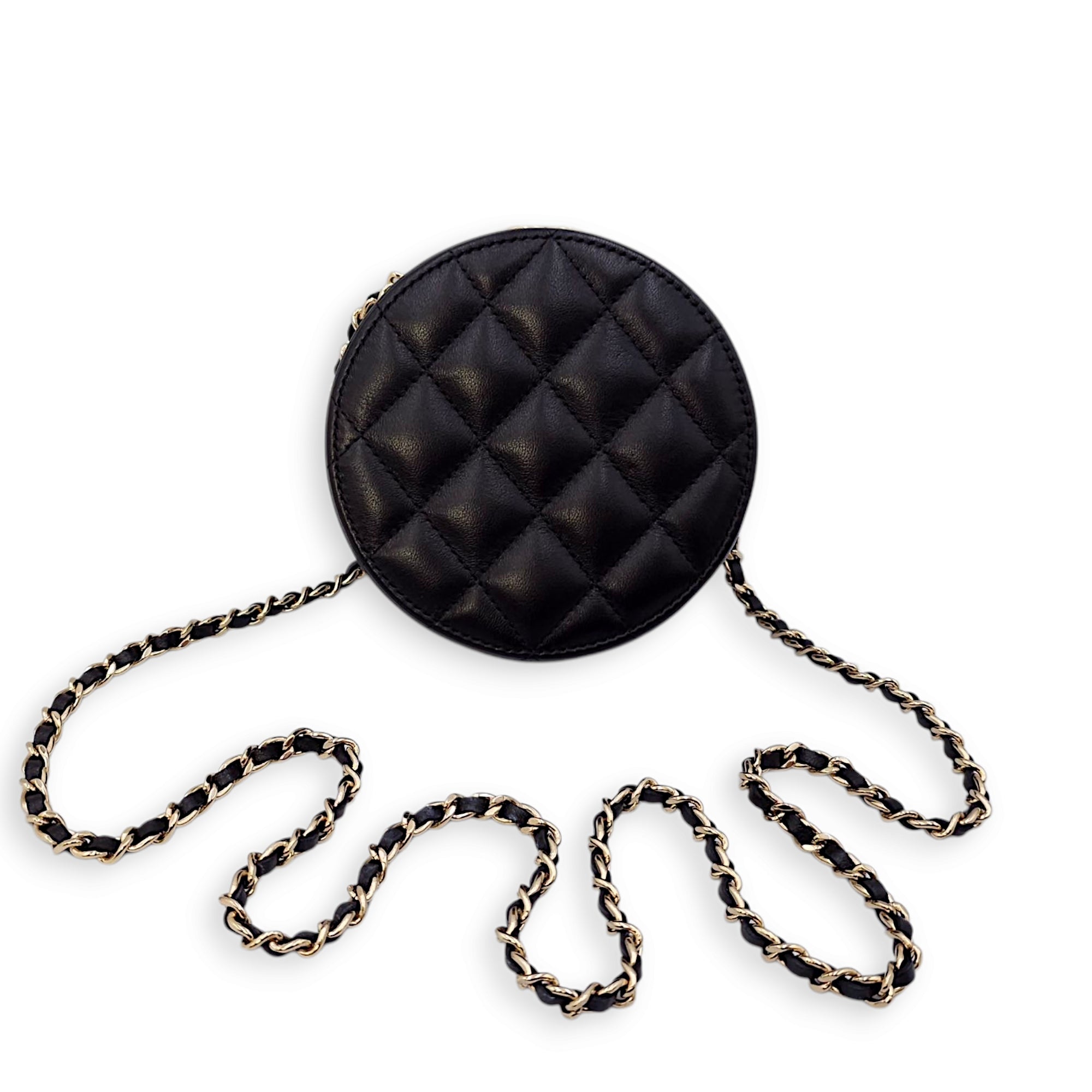 Be the first to review “Quilted Filigree Chain Around Circle Black Crossbody Bag in Lambskin, Gold hardware”