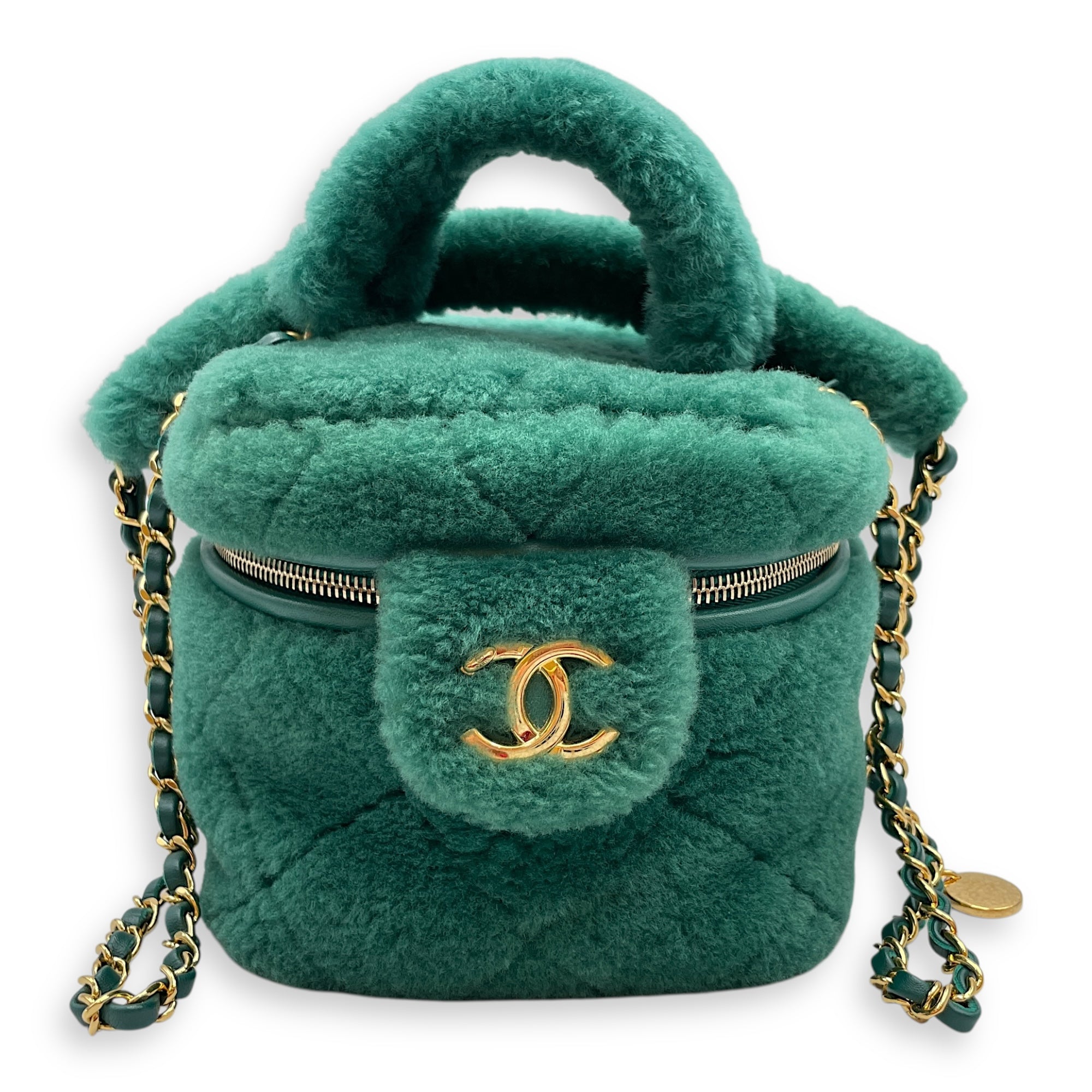 Be the first to review “Shearling Quilted Vanity Green Shoulder Bag in Lambskin, Gold hardware”