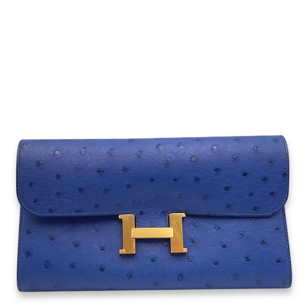 Constance Blue Saphir Wallet on Chain in Ostrich, Gold hardware