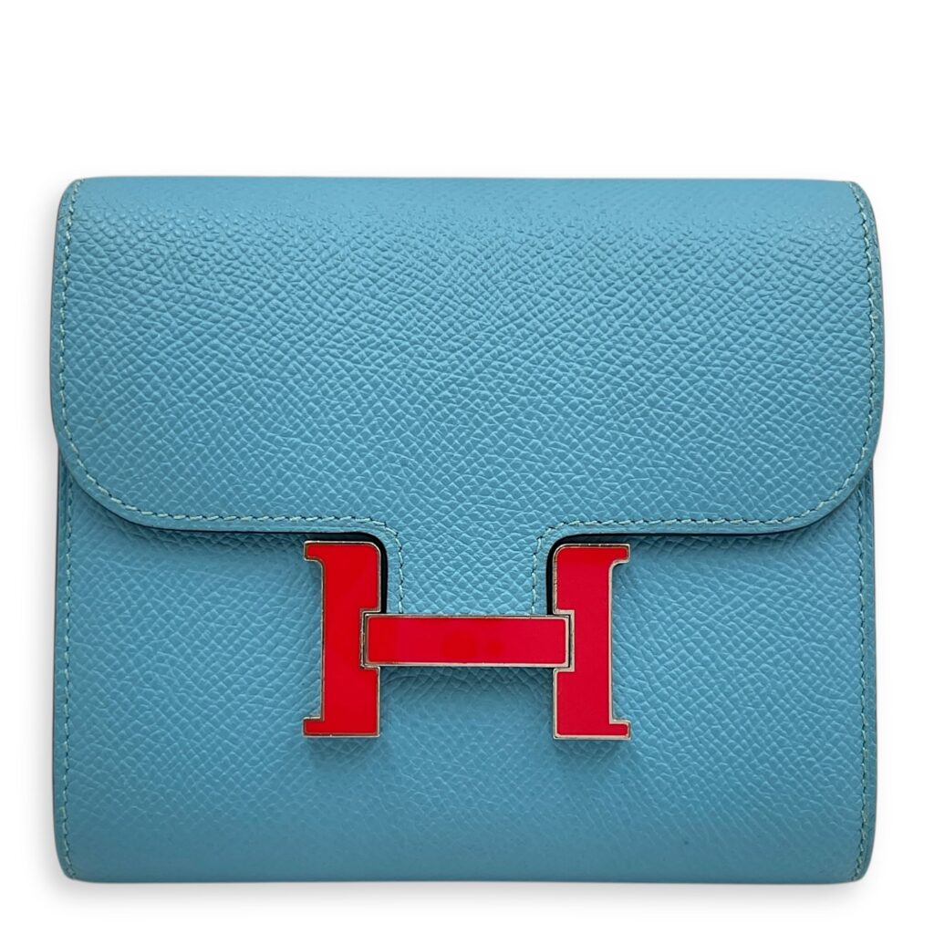 Constance Blue Du Nord Compact Wallet in Epsom, Enamel hardware